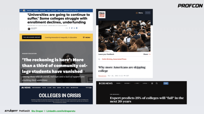News outlets around the nation are painting a concerning picture for universities and colleges.