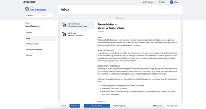 Most Stukent Simternships are divided into rounds, which makes it easy to pace the material across a semester. A Simternship’s early rounds will introduce students to foundational tasks and provide instant feedback on their work. As your students progress, the simulation will present them with new challenges to overcome. They will take on additional responsibilities and often manage multiple projects at once, just like they would in the real world.