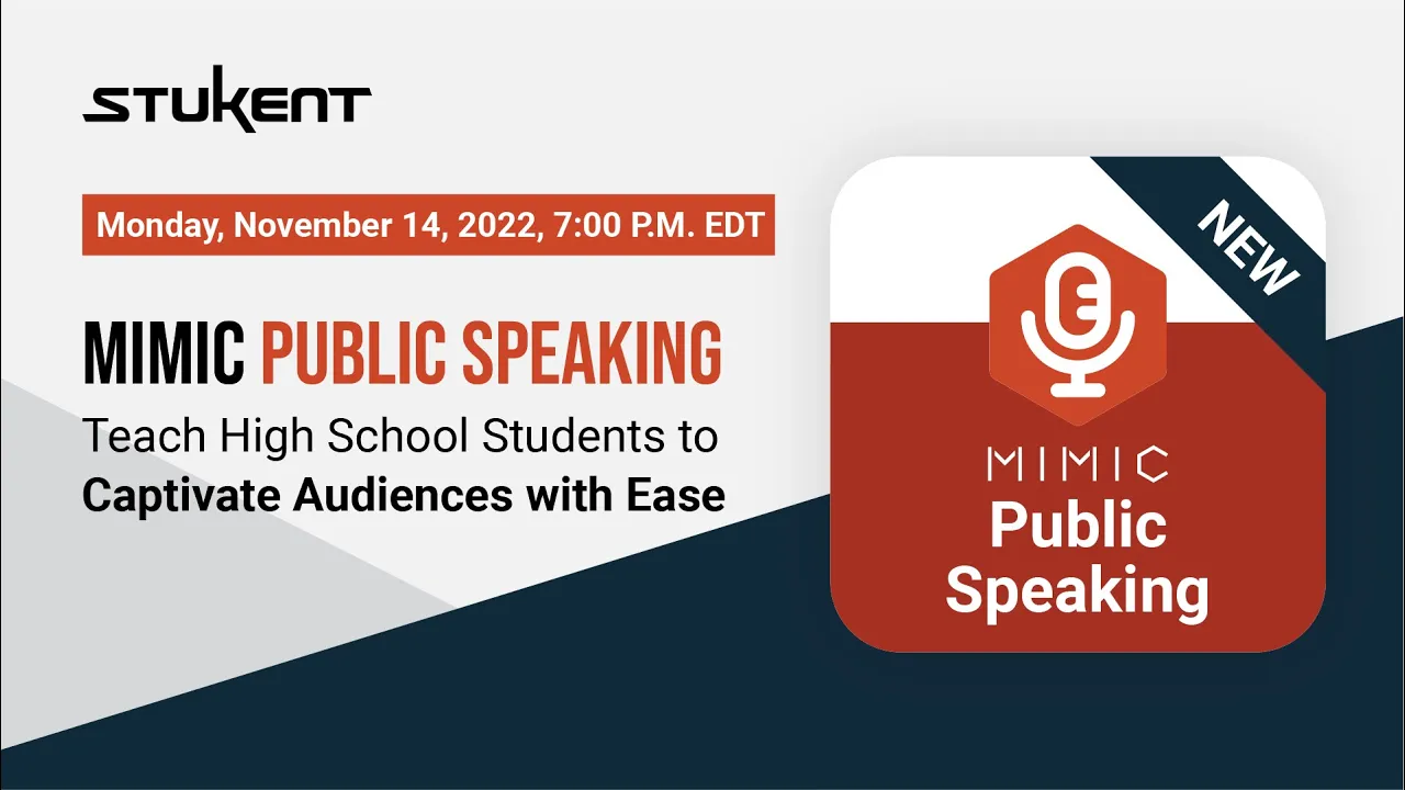 Turn your students into competent, compelling public speakers! In this hour-long event, you’ll get a sneak peek at Stukent’s all-new high school simulation, Mimic Public Speaking.