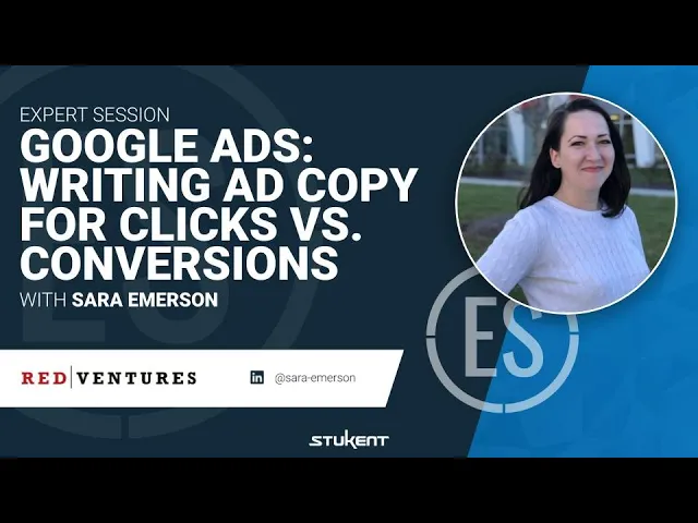 Sara Emerson, senior paid media associate at Red Ventures, discusses ad copy strategies that drive clicks and conversions, goals you can set to achieve both, and tips for adapting best practices to your specific goals. This video will help digital marketers become familiar with building a Google Ads strategy and understand what it takes to write copy for clicks and conversions.