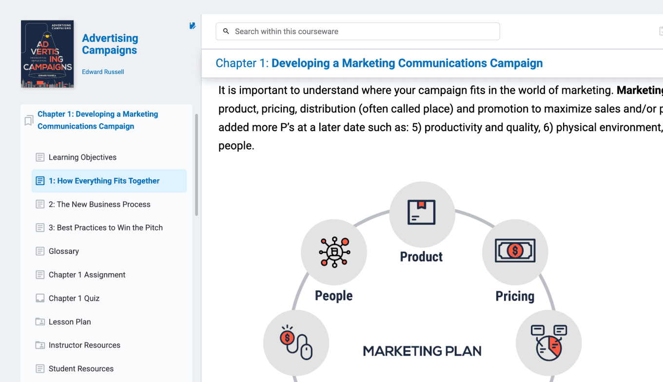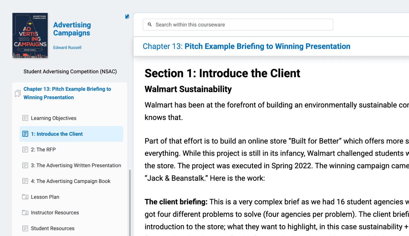 See how easy it is to teach your next course with the “Advertising Campaigns” courseware.