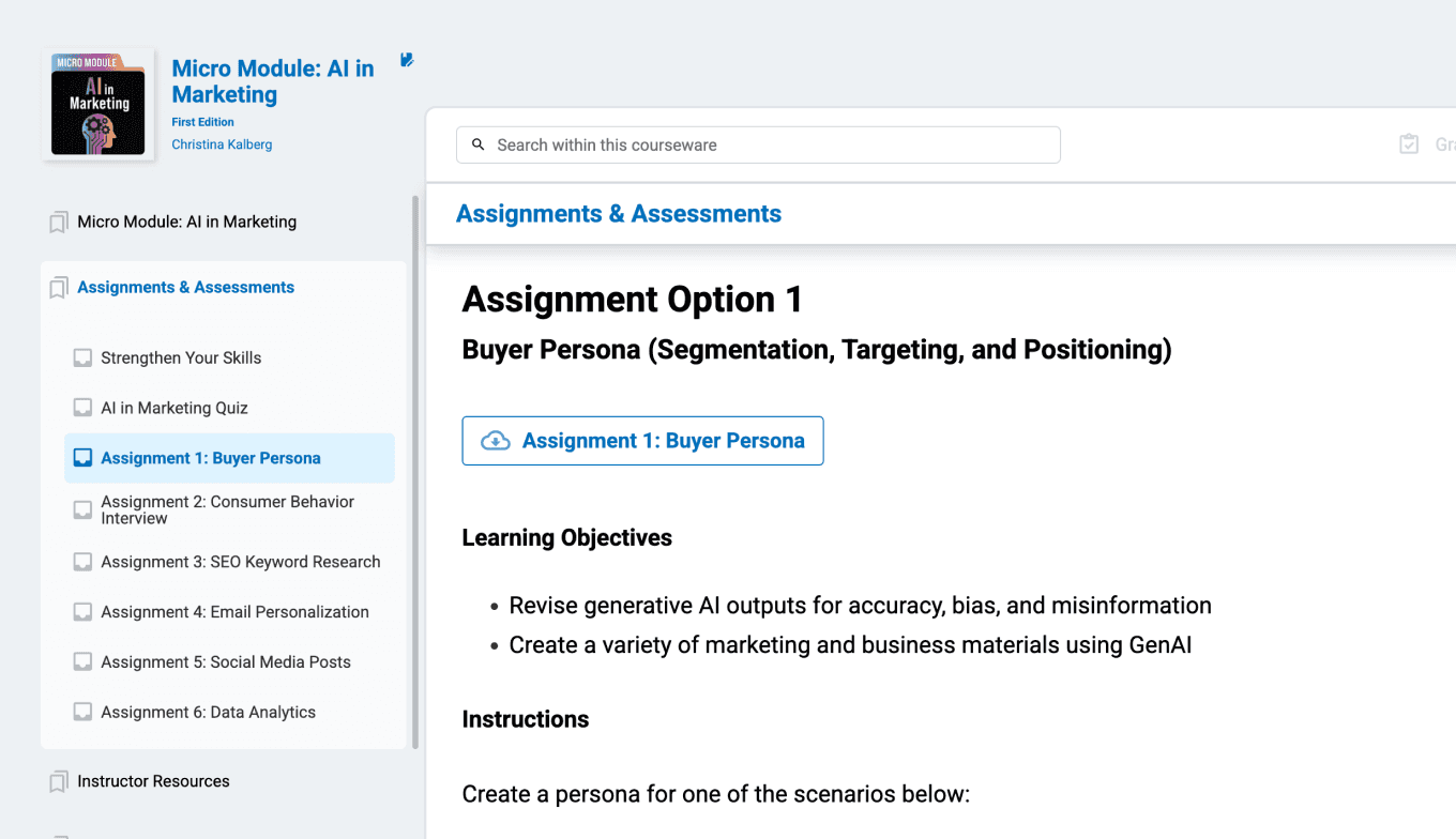 See how easy it is to teach your next course with the Micro Module: AI in Marketing.