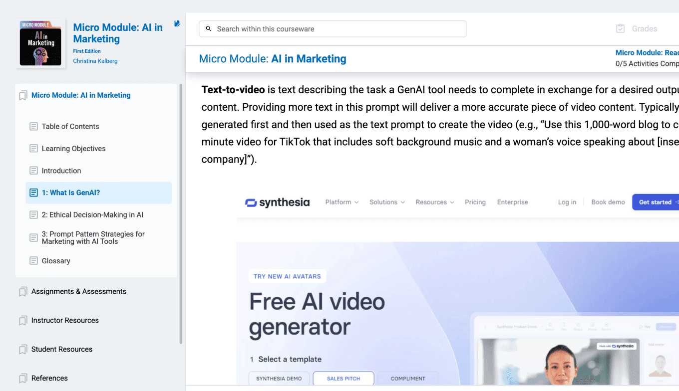 The Micro Module: AI in Marketing contains robust instructional resources for educators and students. Best of all, the Stukent team updates the courseware annually, which means your curriculum will always be on the cutting edge of industry.