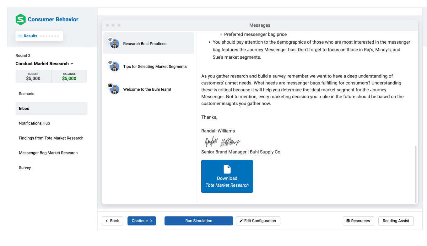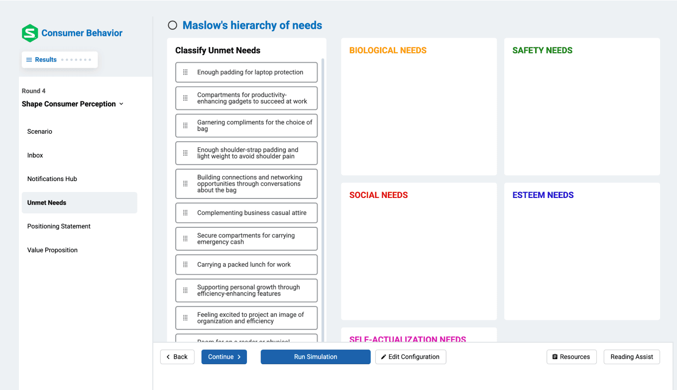 Pair the simulation with the “Consumer Behavior” courseware to help students connect theory to practical decision-making in the workplace.