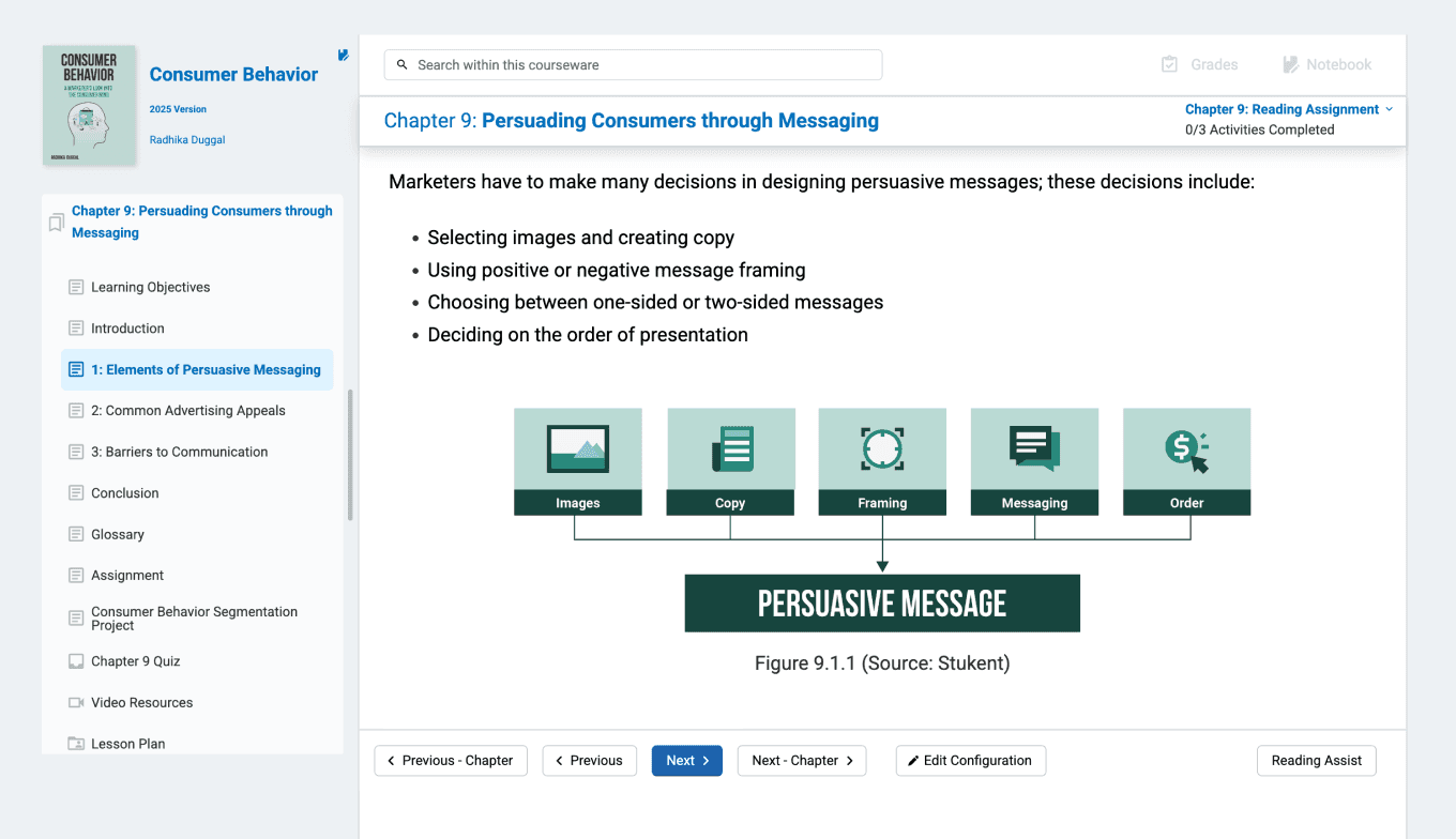 Equip your students with the marketing skills they need to thrive in today’s dynamic, fast-paced business world. The “Consumer Behavior” courseware provides students with a comprehensive understanding of the psychological, cultural, and technological factors that influence buying decisions, and how marketers can utilize these insights to shape buyer behavior.