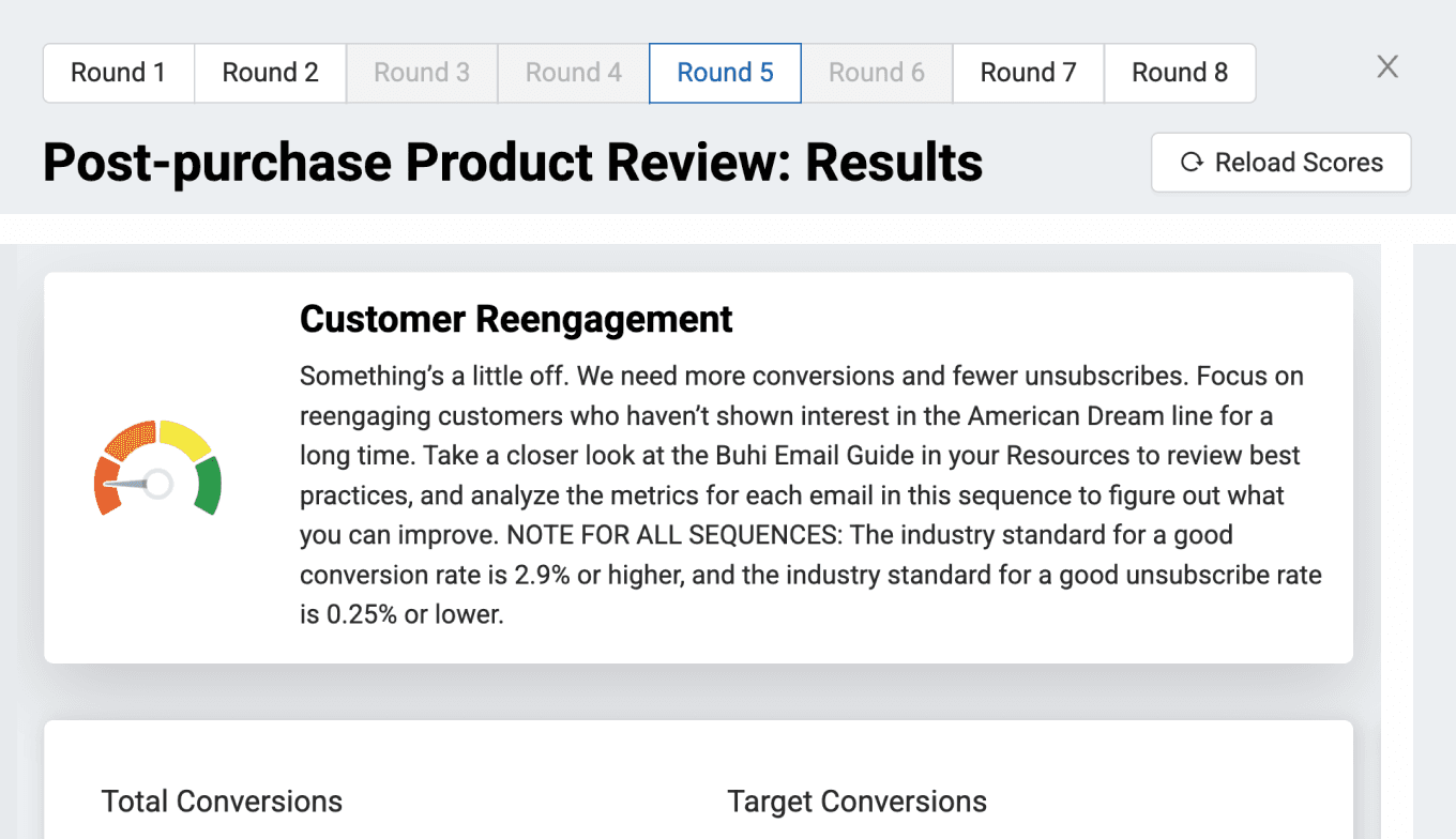 Each round asks students to apply what they’ve learned to real-world email marketing scenarios. Curious to see how the Simternship works? Take a guided tour of a round!