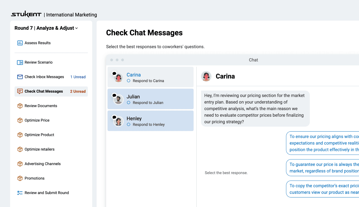 Pair the Simternship with the “International Marketing” courseware for a learning experience that connects foundational concepts with real-world execution.