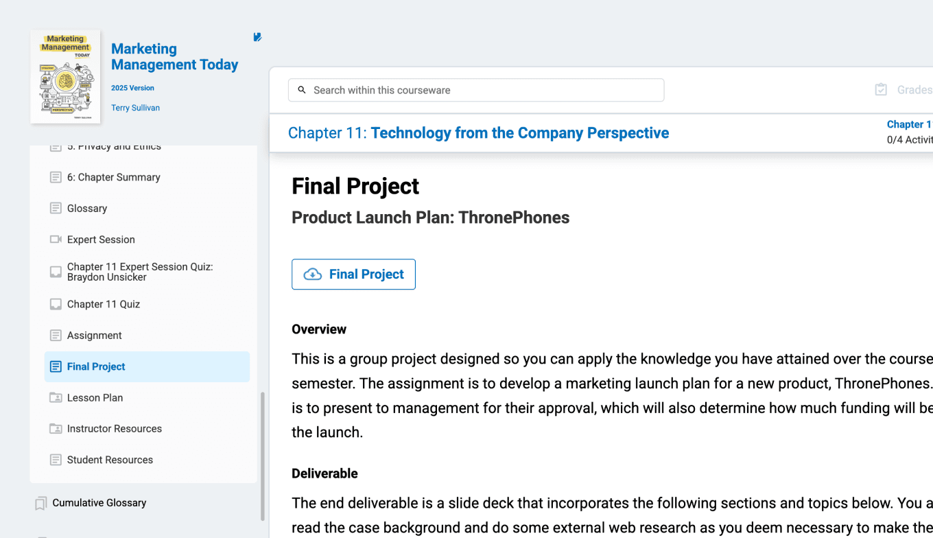 See how easy it is to add experiential learning to your course with the “Marketing Management” courseware.