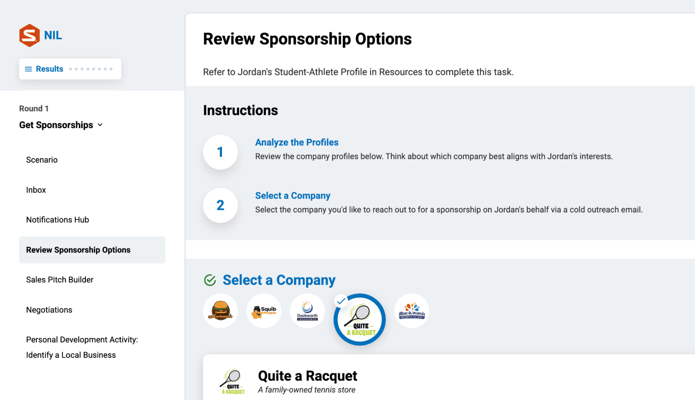 Every round presents students with the types of authentic NIL scenarios they'll face in their careers. Take a guided tour of one round!