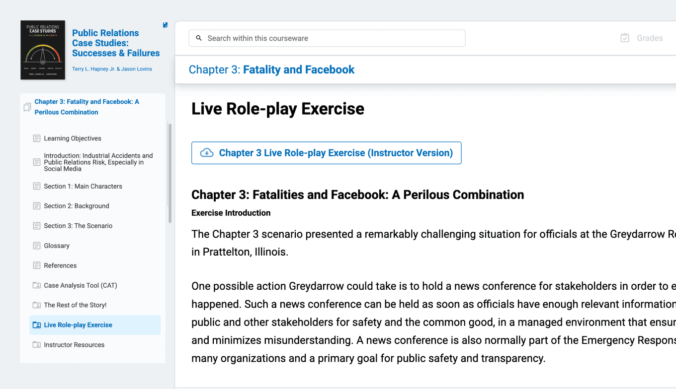 See how easy it is to immerse students in real-world communication challenges with the “PR Case Studies” courseware.