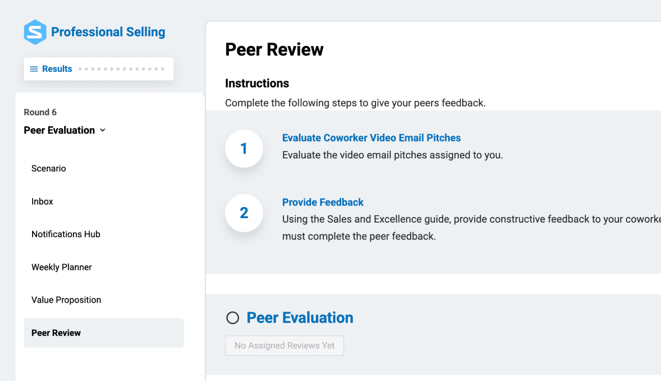 The simulation follows the sales process and allows students to build their skill set at their pace while providing feedback and support. It follows the flow of the textbook. It allows video recording and peer evaluations. It is a support to the regular classroom curriculum. Students tell me that they also enjoy the simulation and learn from it.