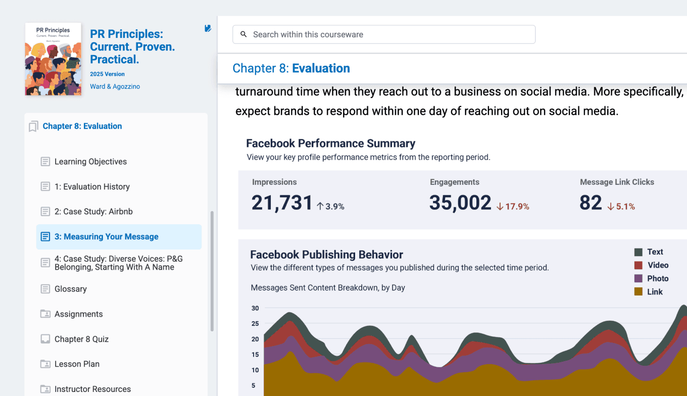 The “PR Principles” courseware contains robust instructional resources for educators and students. Best of all, the Stukent team updates the courseware annually, which means your curriculum will always be on the cutting edge of industry.