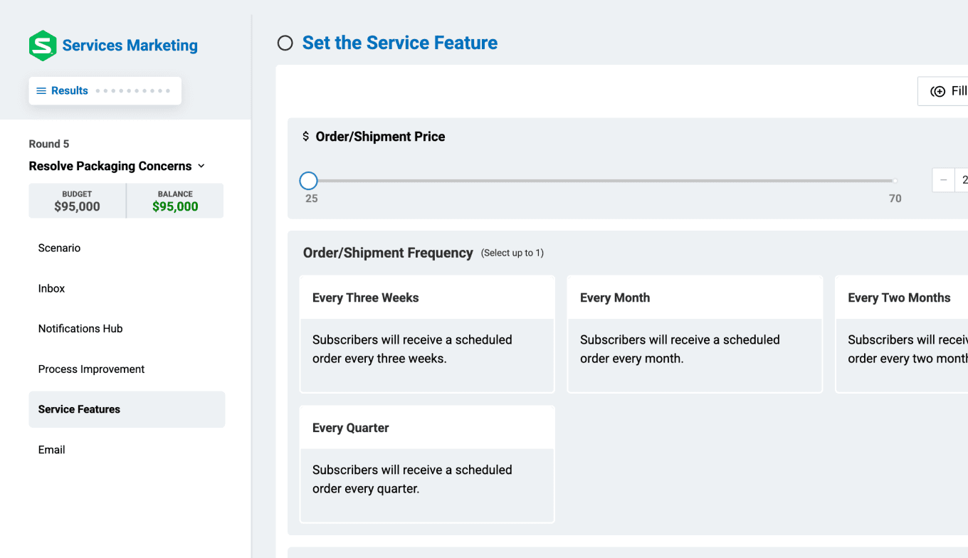 Combine the simulation with the "Services and Experience Marketing" courseware to help students link classroom concepts to real-world scenarios.