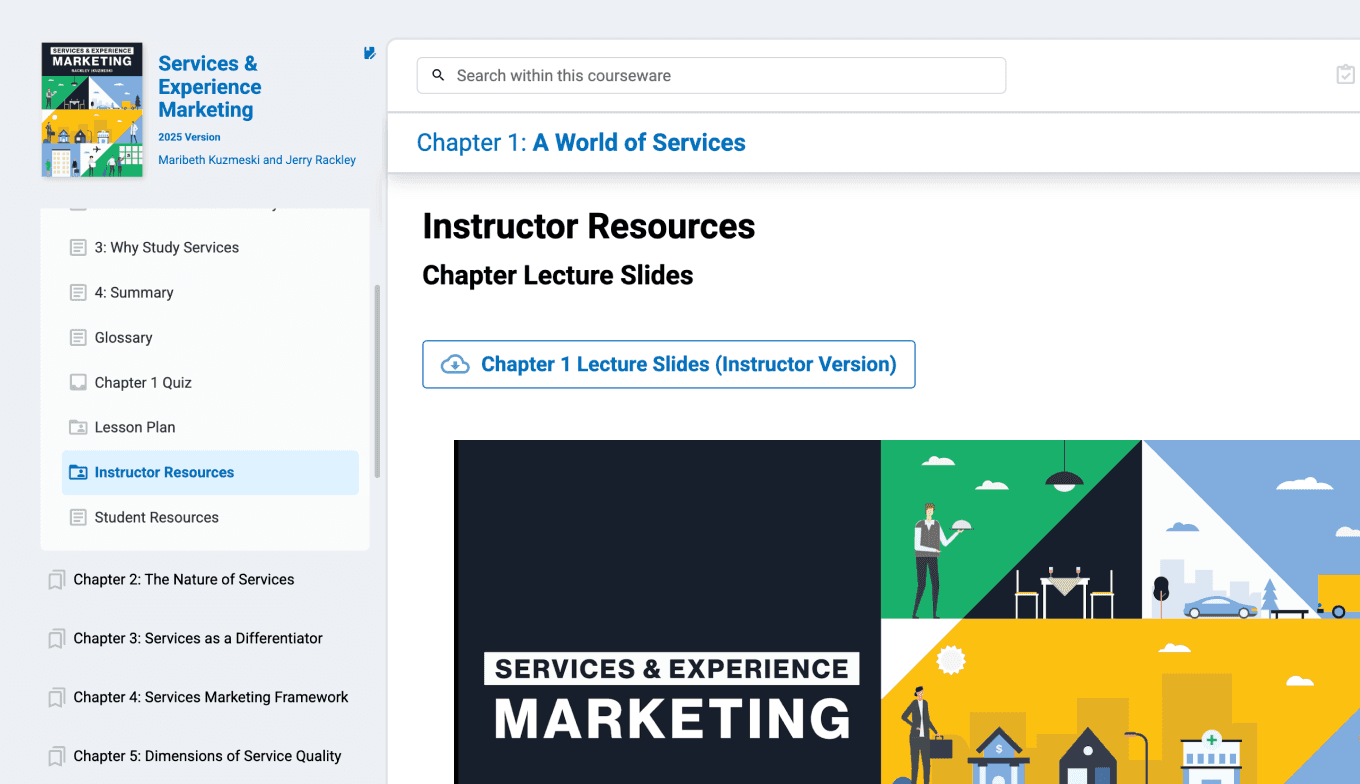 See how easy it is to teach your next course with the “Services and Experience Marketing” courseware.
