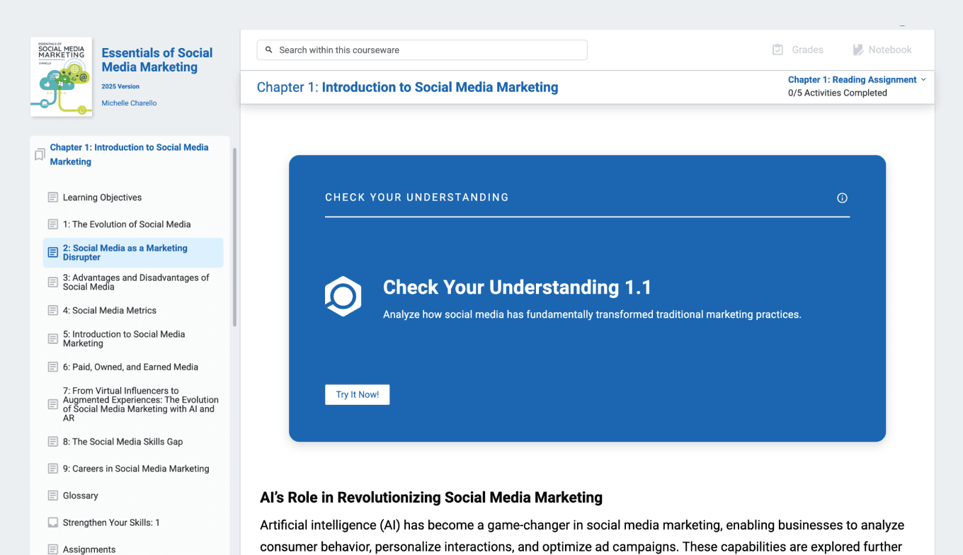 See how easy it is to teach your next course with the “Essentials of Social Media Marketing” courseware