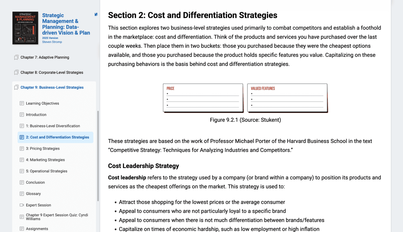 The “Strategic Management and Planning” courseware contains robust instructional resources for educators and students. Best of all, the Stukent team updates the courseware annually, which means your curriculum will always be on the cutting edge of your industry.