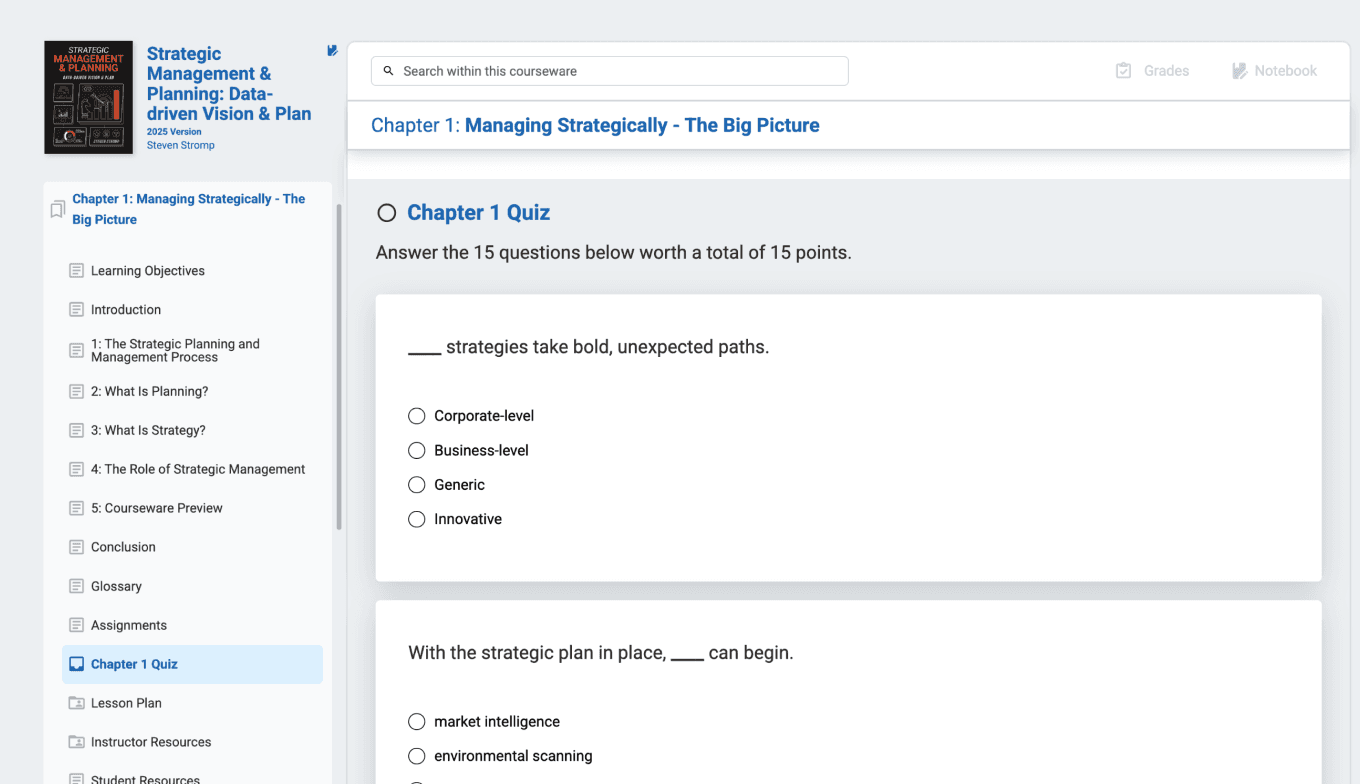 See how easy it is to teach your next course with the “Strategic Management & Planning” courseware.